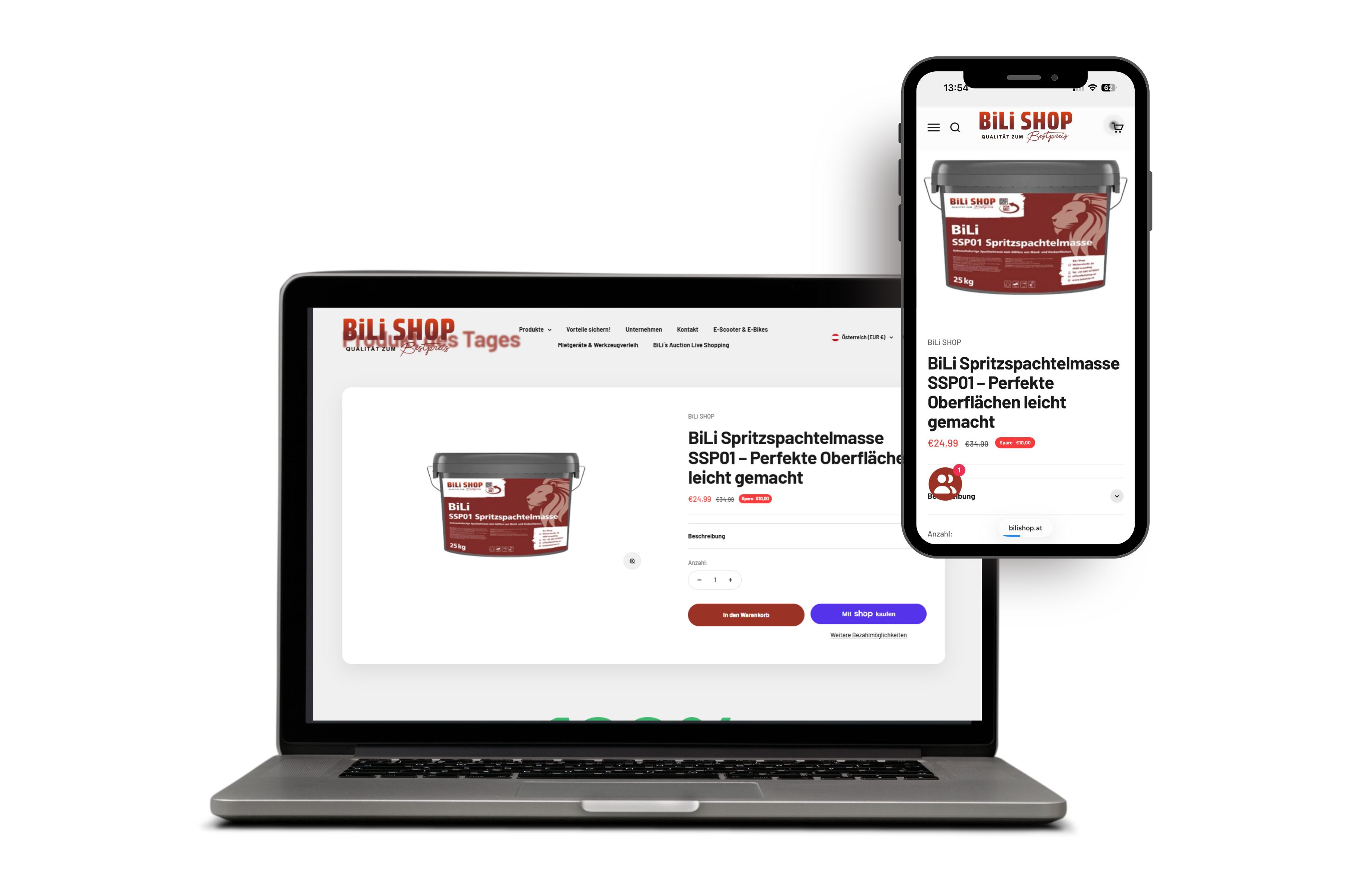 Gleichzeitig fehlten digitale Verkaufsmöglichkeiten, klare Produktdarstellungen und ein professionelles Erscheinungsbild, das Vertrauen schafft. Um konkurrenzfähig zu bleiben, benötigte BiLi SHOP einen ganzheitlichen digitalen Auftritt – von einem funktionalen Online-Shop über regelmäßige Pflege bis hin zu zielgerichteten Werbekampagnen und professionell gestalteten Produktkatalogen.
