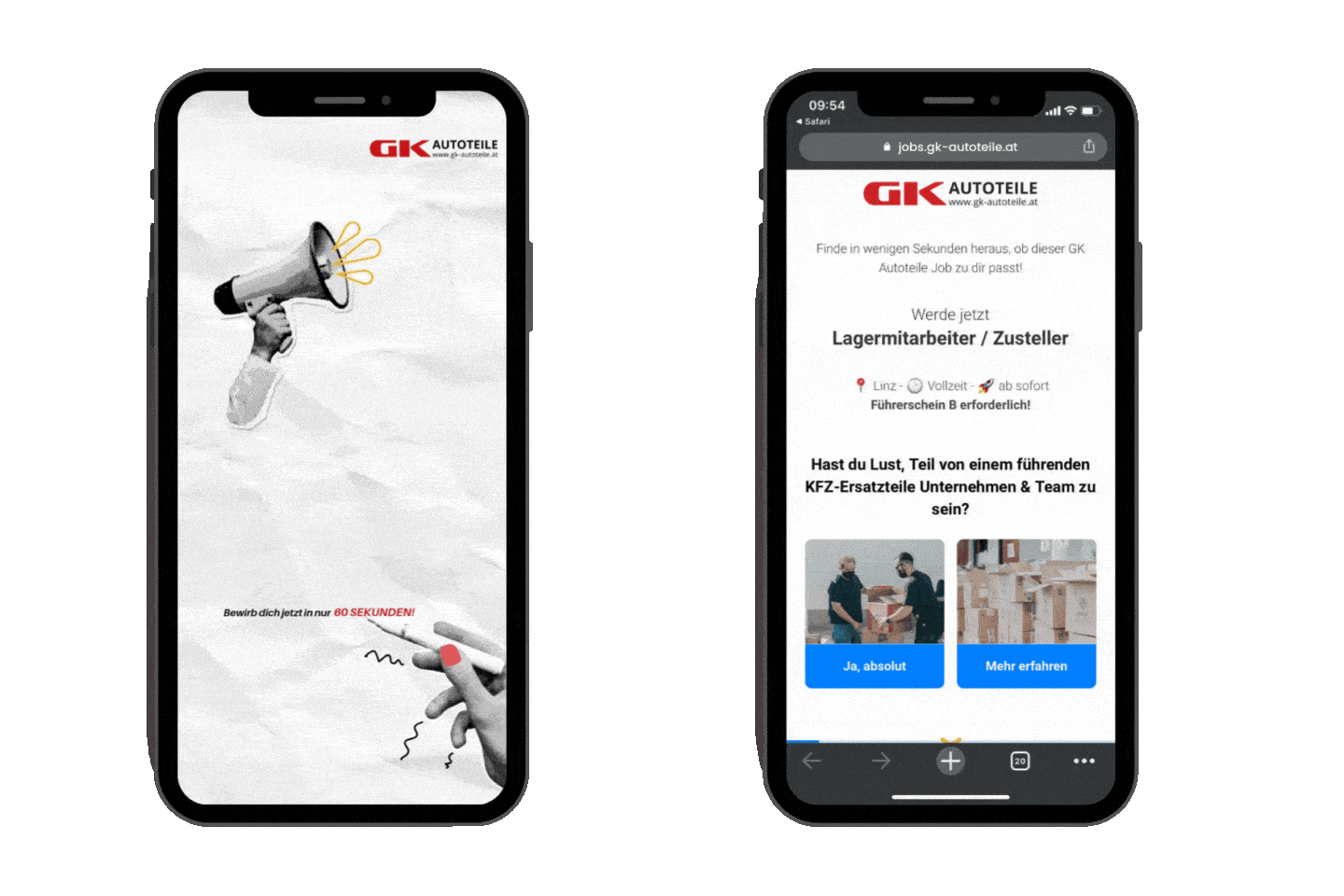 Unser mehrfach getesteter Social-Media-Recruiting-Funnel sorgt dafür, dass sich Bewerber schnell, unkompliziert und ohne Lebenslauf bewerben können.